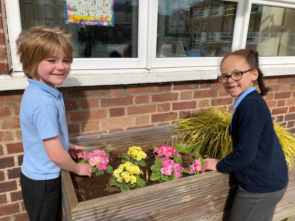 The Eco Council have been busy planting the outside tubs with spring flowers and the whole school have planted sunflower seeds to brighten up their homes.